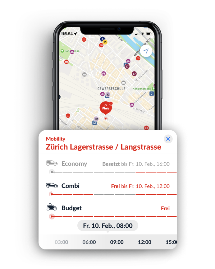 Noch nie war es so einfach, das nächste freie Mobility Fahrzeug zu finden.